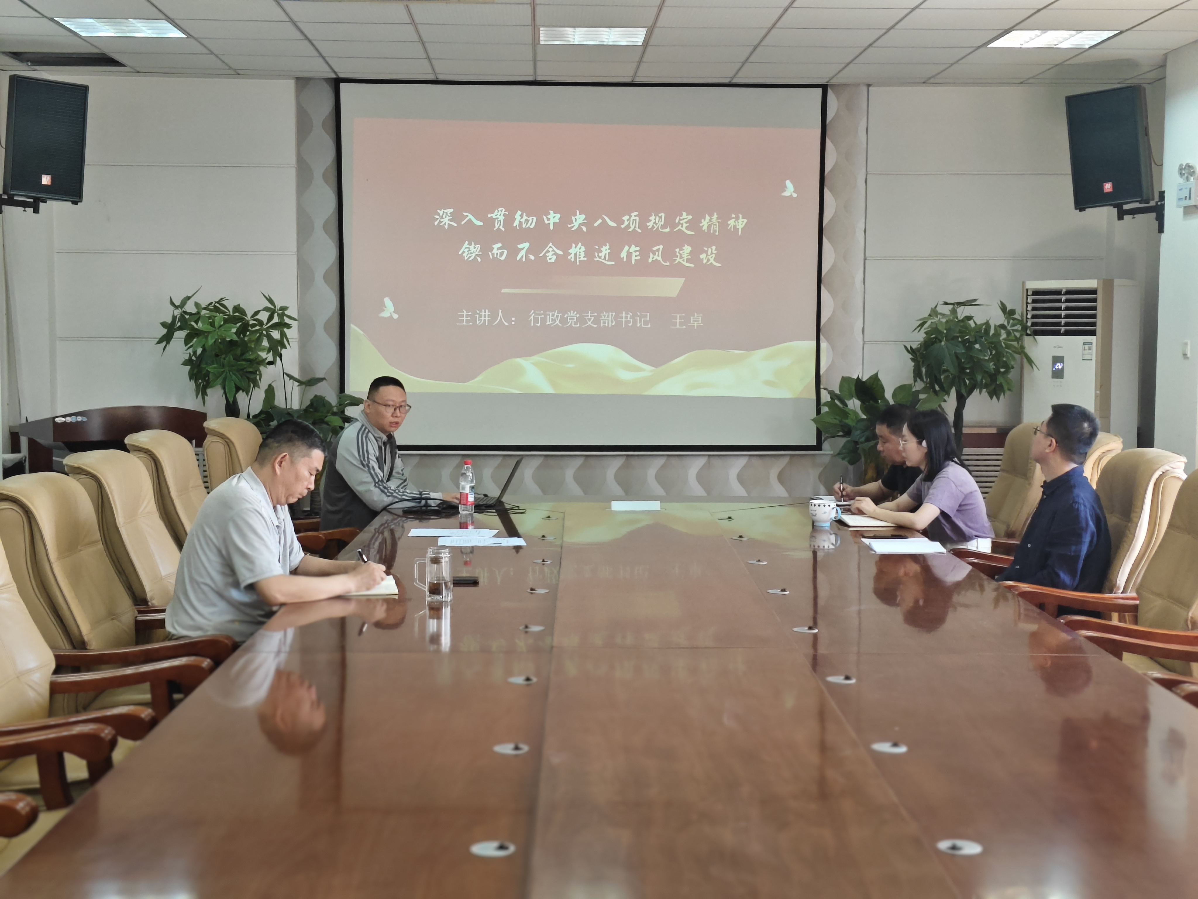 党课活动中,支部书记王卓领学习了习近平总书记在贵州、云南、洛阳考察时关于深入贯彻中央八项规定精神学习教育的重要讲话精神,并以《锲而不舍落实中央八项规定精神 持续推进作风建设》为题为支部全体党员开展专题党课。党课回顾了中央八项规定的发展历程、实施细则精神及主要内容,阐述开展此次学习教育的重大意义。
