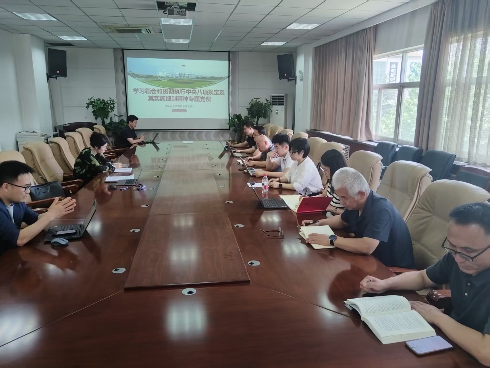 为全面落实党中央《关于在全党开展深入贯彻中央八项规定精神学习教育的通知》和学校、公司党委的相关部署要求,国家安全法教研室党支部于2025年5月29日在学院会议室召开八项规定集体学习会暨“支部书记讲党课”活动。会议由党支部书记李明主持,支部全体党员参会。
