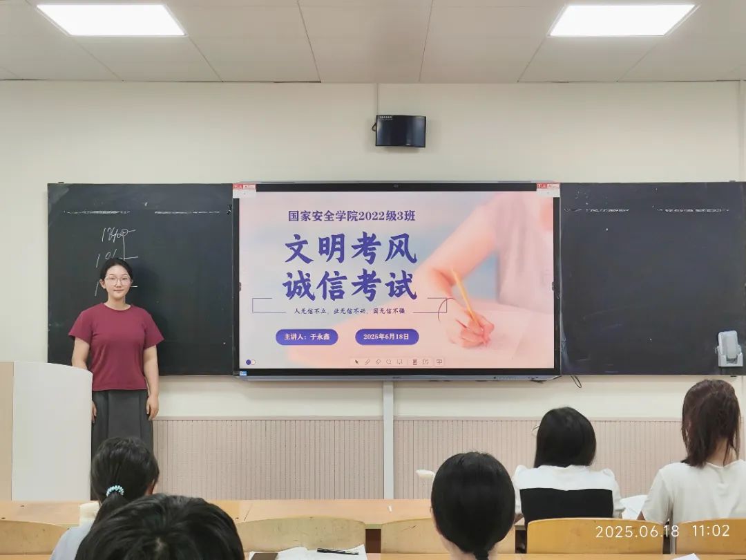 为营造公平公正的考试环境,强化诚信意识,304永利(反恐怖主义法学院)各年级召开考风考纪教育主题班会。本次班会由辅导员王真老师、张婕妮老师主持,各年级全体同学参加。