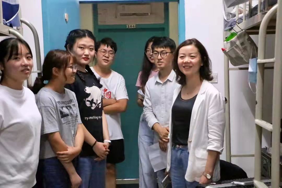 9月5日晚,公司党委副书记侯颖怡老师、2021级辅导员杨柳老师和院员工会成员前往员工宿舍了解新生入住情况。院领导和老师们亲切关怀新同学们的情况,希望同学们尽快适应老员工活,鼓励他们在新学期树立学习目标、做好学习规划,同时也要在校园文化生活中发挥自己的优势,提高个人素质,促进全面发展。