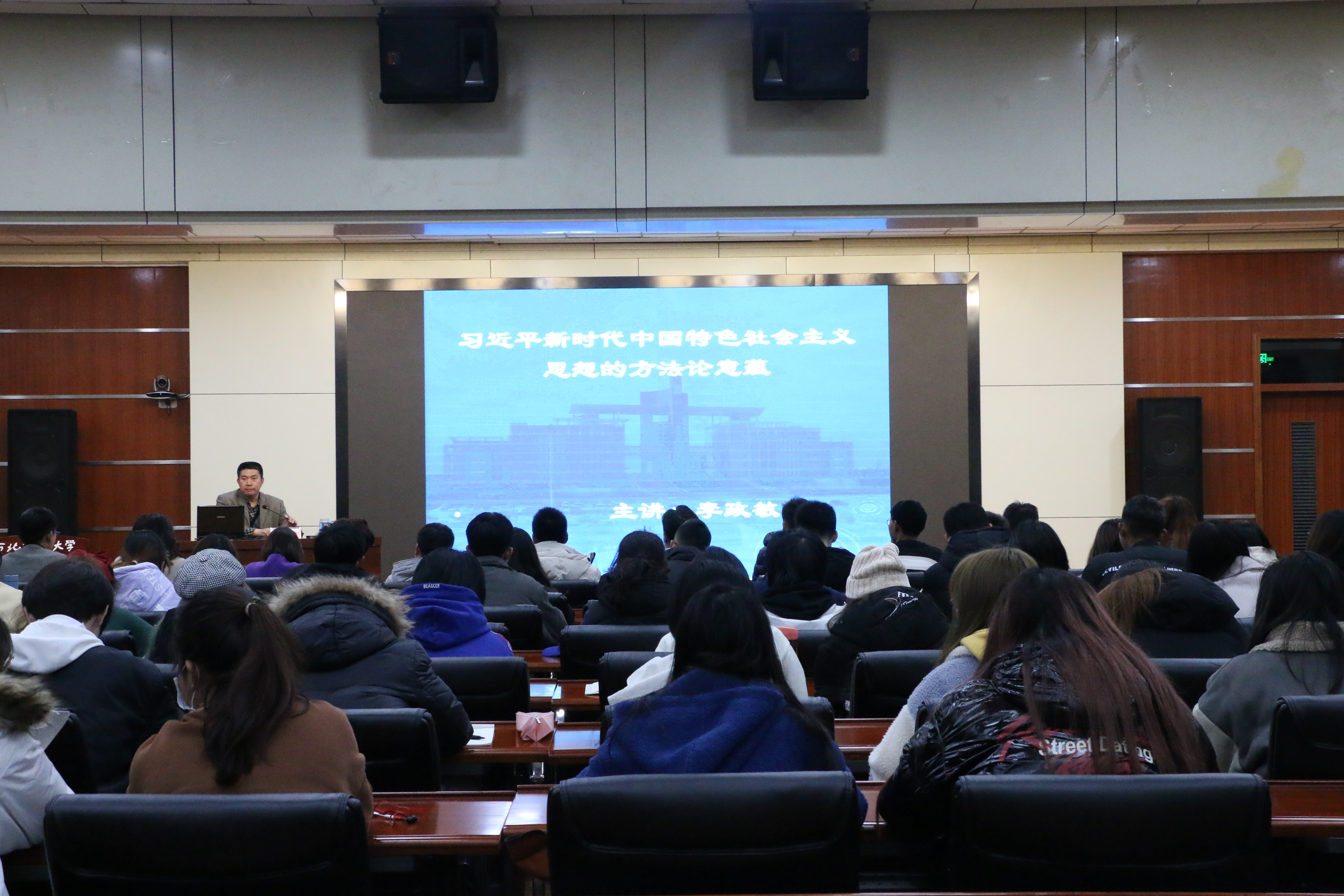 11月30日晚,反恐怖主义法学院在图书馆一楼报告厅举行首届老员工骨干培训班开班仪式。党委书记李政敏以《习近平新时代中国特色社会主义思想的方法论意蕴》为题进行第一讲授课。党委副书记侯颖怡、各年级辅导员及全体参训员工骨干到场参加。