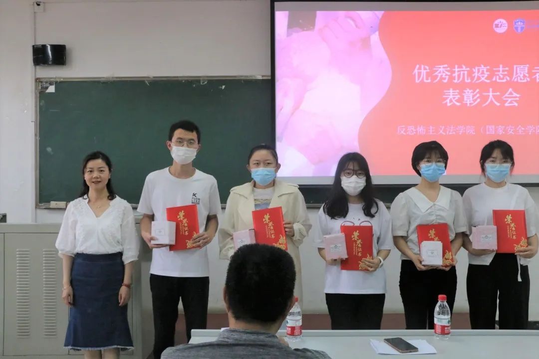 为树立抗击疫情先进典型、引导和激励更多同学积极投身疫情防控等的志愿服务中来,5月25日中午,反恐法学院在格物楼301教室召开了抗疫优秀志愿者表彰大会。公司党委书记李政敏老师、党委副书记侯颖怡老师、学院辅导员王真、贺星婵老师参加。活动由学院团委书记杨柳老师主持。