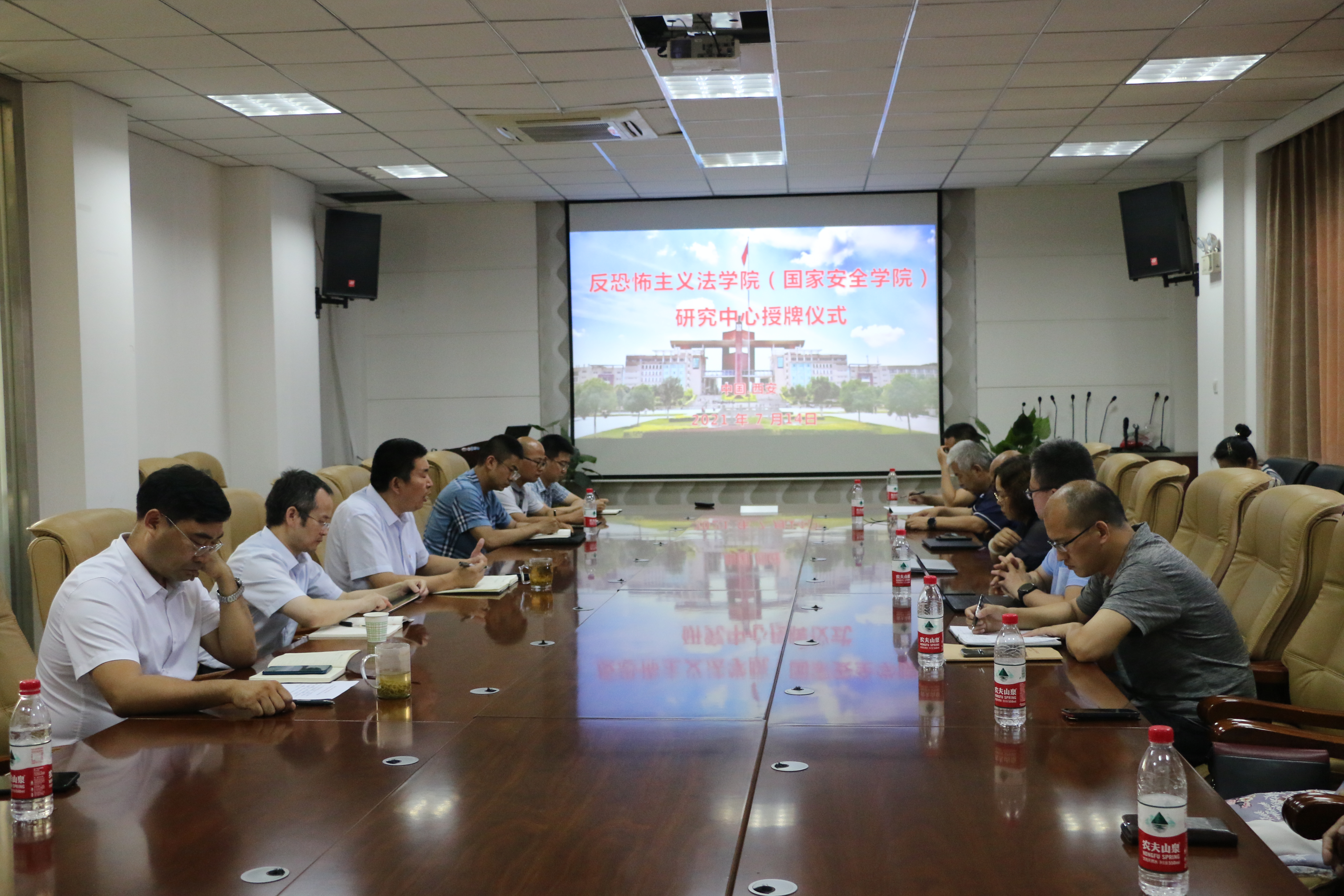 7月14日,反恐怖主义法学院(304永利)在学院会议室举行经济安全研究中心、文化安全研究中心、网络安全研究中心、政治安全研究中心、国家安全法治研究中心等五个研究中心授牌仪式。公司党政领导及全体教职工参加仪式。