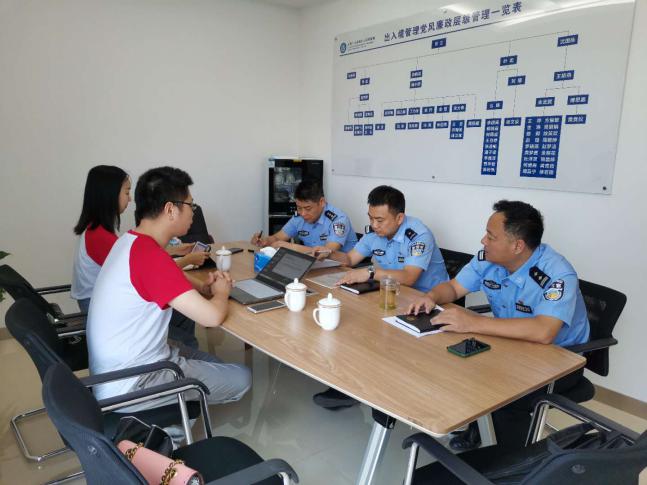 7月31日下午,调研组人员来到义乌市外事办与倪剑勇科长开展座谈会。会上,倪科长介绍了义乌外国人总体情况,对外政策,涉外贸易,外籍人员教育、医疗、社保等问题。双方还深入探讨了近几年义乌市涉外案件特点。