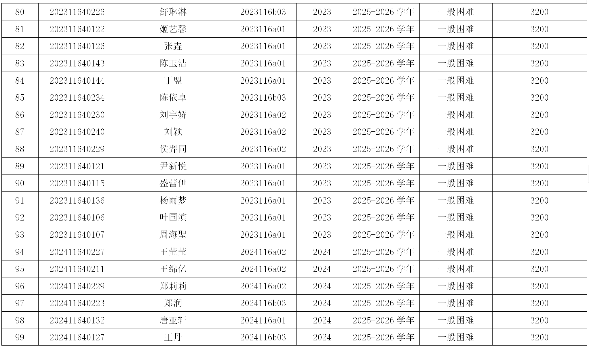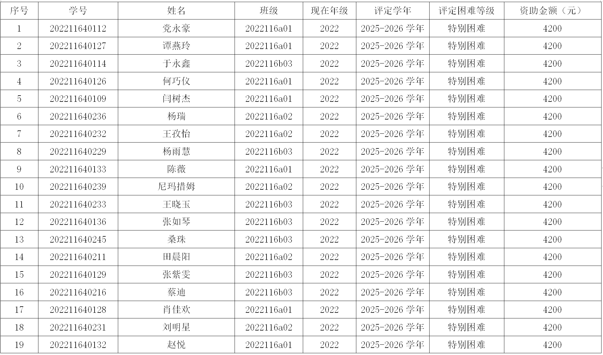 公司根据《关于做好2025-2026学年国家助学金评审工作的通知》和《西北法大学国家助学金管理办法》相关规定,认真做好2025-2026学年国家助学金评审工作。经员工自愿申请、班级民主评议审核通过,现将评审名单公示如下: