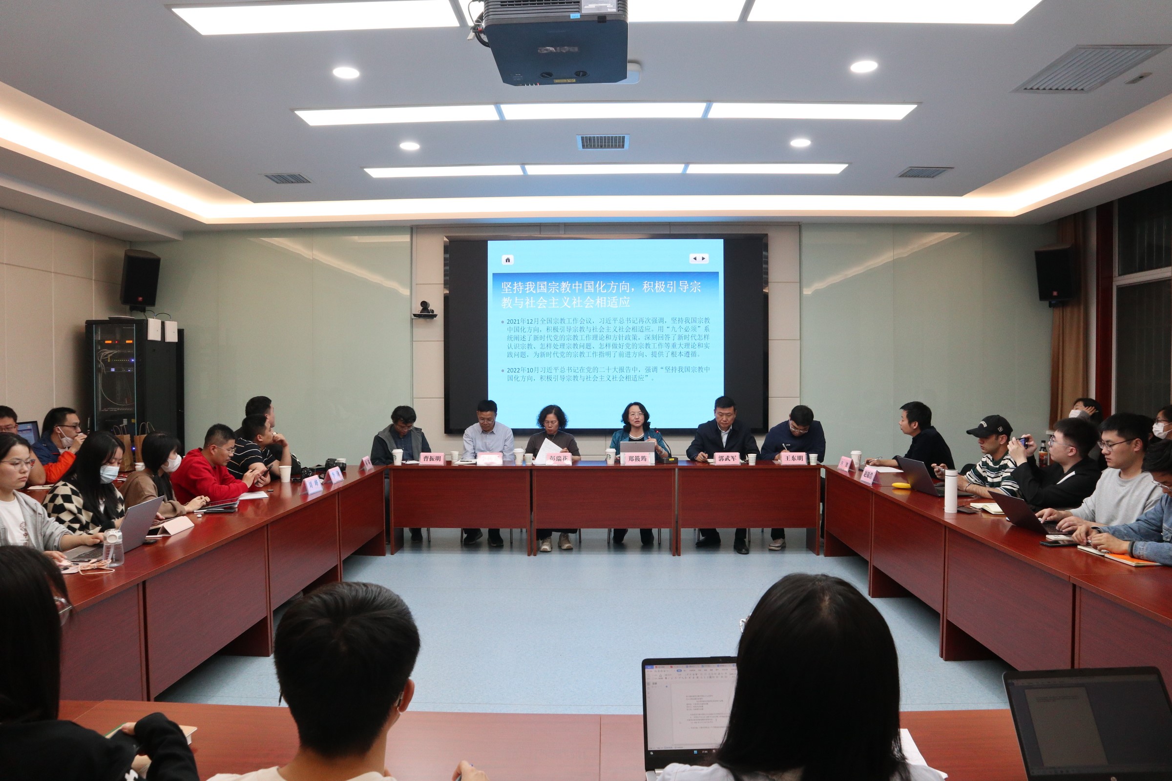 5月11日晚,中国社会科学院世界宗教研究所所长郑筱筠研究员应邀为公司师生作“深入推进我国宗教中国化的历史经验和实践路径”的学术讲座。讲座由304永利党委副书记、马克思主义宗教学研究中心主任郭武军主持,马克思主义宗教学研究中心执行主任彭瑞花教授做总结发言。中国社会科学院世界宗教研究所博士后林啸副教授、赵锦浩博士、304永利副经理王东明副教授、李锋副教授,西北大学李利安教授、曹振明副教授、刘峰讲师,陕西师范大学宗教研究中心副主任许潇副教授及公司硕博士研究生共计60余人参加讲座。