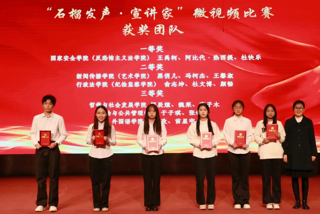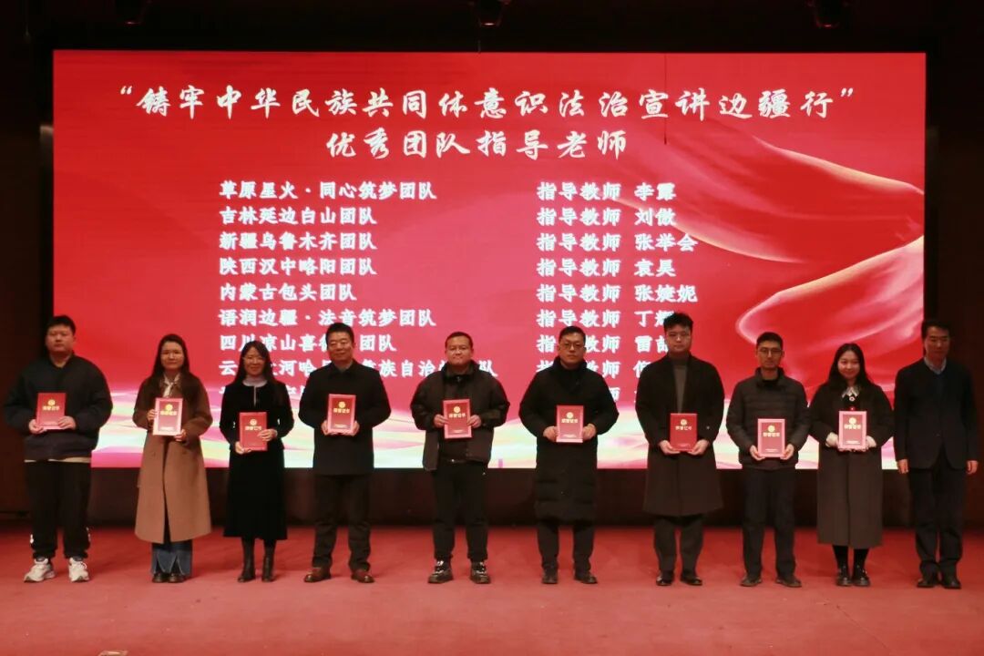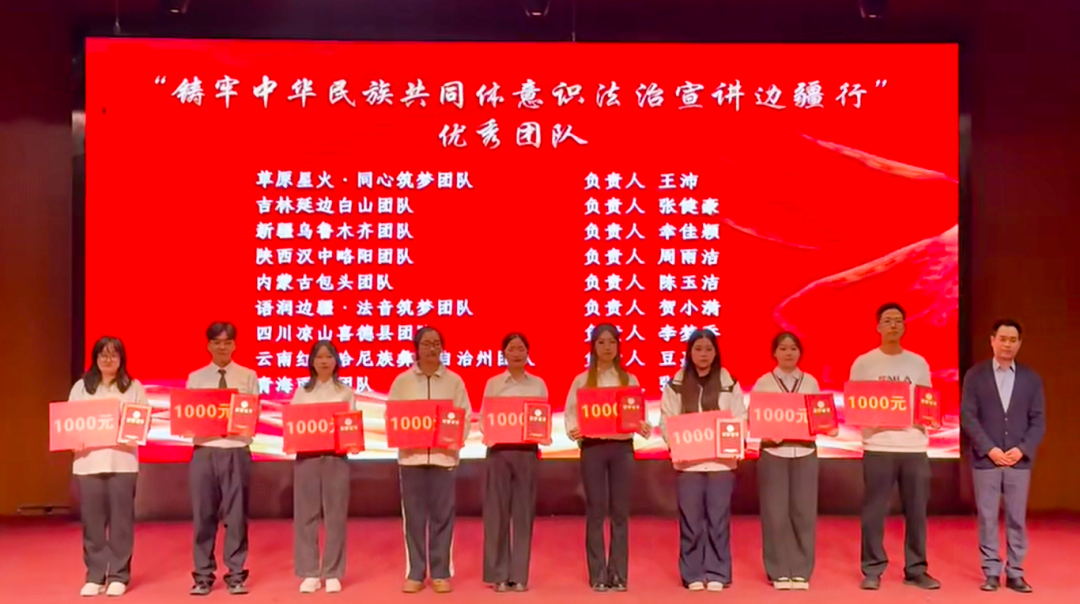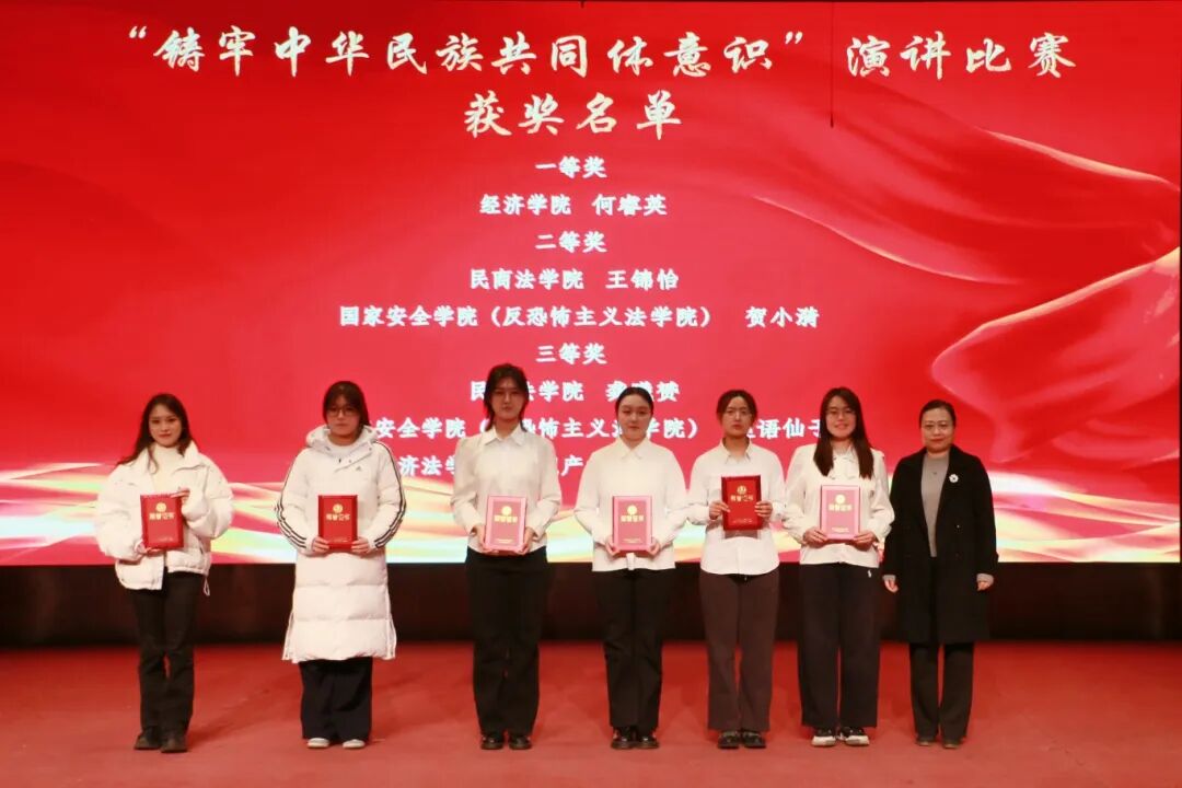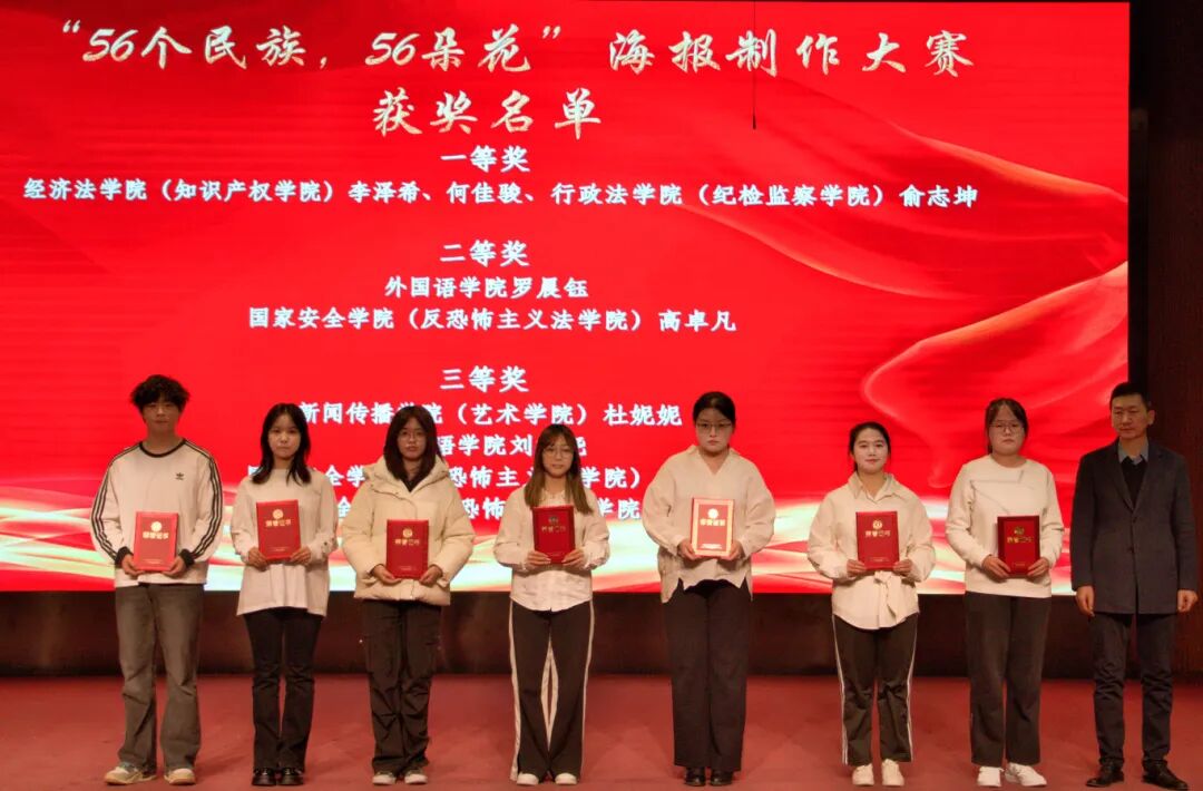 大会分别对“56个民族,56朵花”海报作品制作大赛、“中华风韵”手工作品制作大赛、第三届“石榴发声·宣讲家”微视频比赛、“铸牢中华民族共同体意识”演讲比赛,以及“铸牢中华民族共同体意识法治宣讲边疆行”社会实践活动优秀团队等获奖师生进行表彰,对304永利“弘志”奖学金进行了颁奖。