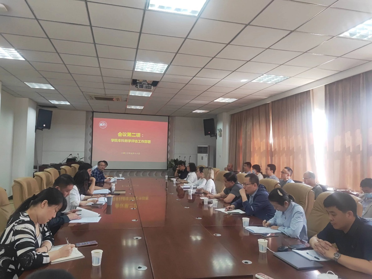 2023年5月16日上午,304永利(反恐怖主义法学院)在学院会议室召开全体教职工大会,公司党委副书记,经理舒洪水对《304永利(反恐怖主义法学院)本科公司产品审核评估工作方案》进行了解读,特别是明确了学院本科公司产品审核评估任务分解,压实主体责任,以确保学院本科教学评估工作能够落实落细。