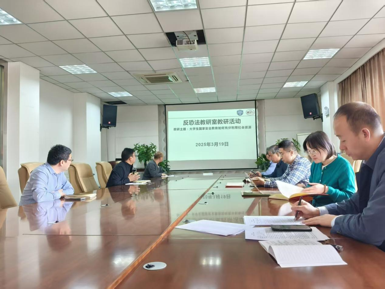 2025年3月19日中午,反恐怖主义法教研室在学院会议室组织召开“老员工国家安全教育如何充分利用社会资源”专题研讨会。会议由教研室主任张波主持,教研室教师参加会议。