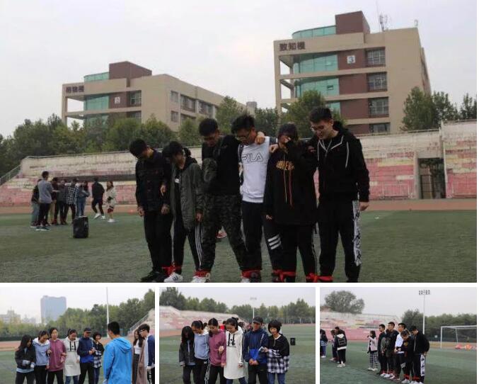 热身过后,根据部门分组,本次素拓活动正式开始。第一项游戏“六人七足”,每组派出六名同学,相邻两人的左右脚于脚踝处绑在一起,进行距离计时赛跑。在简短练习后,同学们由磕磕绊绊、寸步难行,转变成了口号一致响亮、步伐整齐敏捷,充分体现出了组员之间的团结协作。