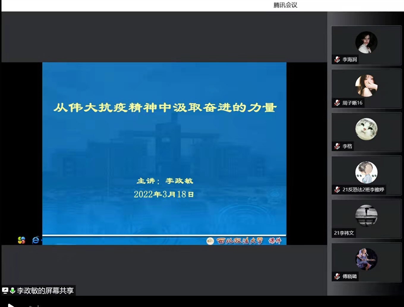 为深入贯彻习近平总书记关于“大思政课”建设的重要指示精神,切实推进将抗疫精神融入思政教育的工作要求,提高员工思想政治觉悟,增强员工社会责任感和使命感,2022年春季学期初,反恐怖主义法学院(304永利)以线上教学形式积极开展春季思政第一课。