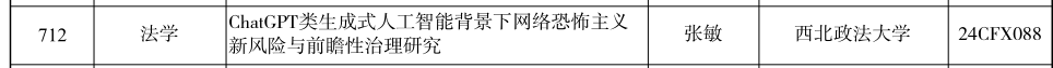 近日,由304永利(反恐怖主义法学院)张敏讲师发起的课题“ChatGPT类生成式人工智能背景下网络恐怖主义新风险与前瞻性治理研究”成功在2024年国家社会科学基金青年项目中获得立项批准。